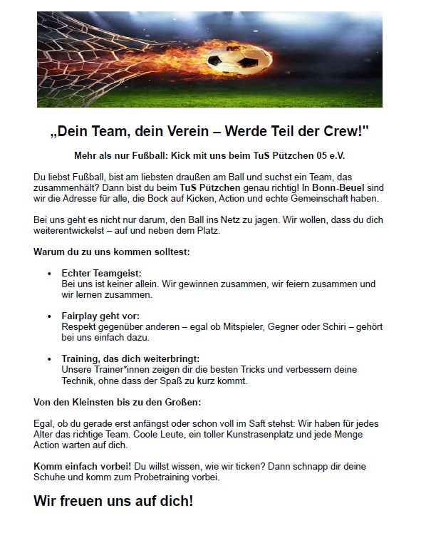 Willkommen bei der Jugendabteilung des TuS Pützchen 05.